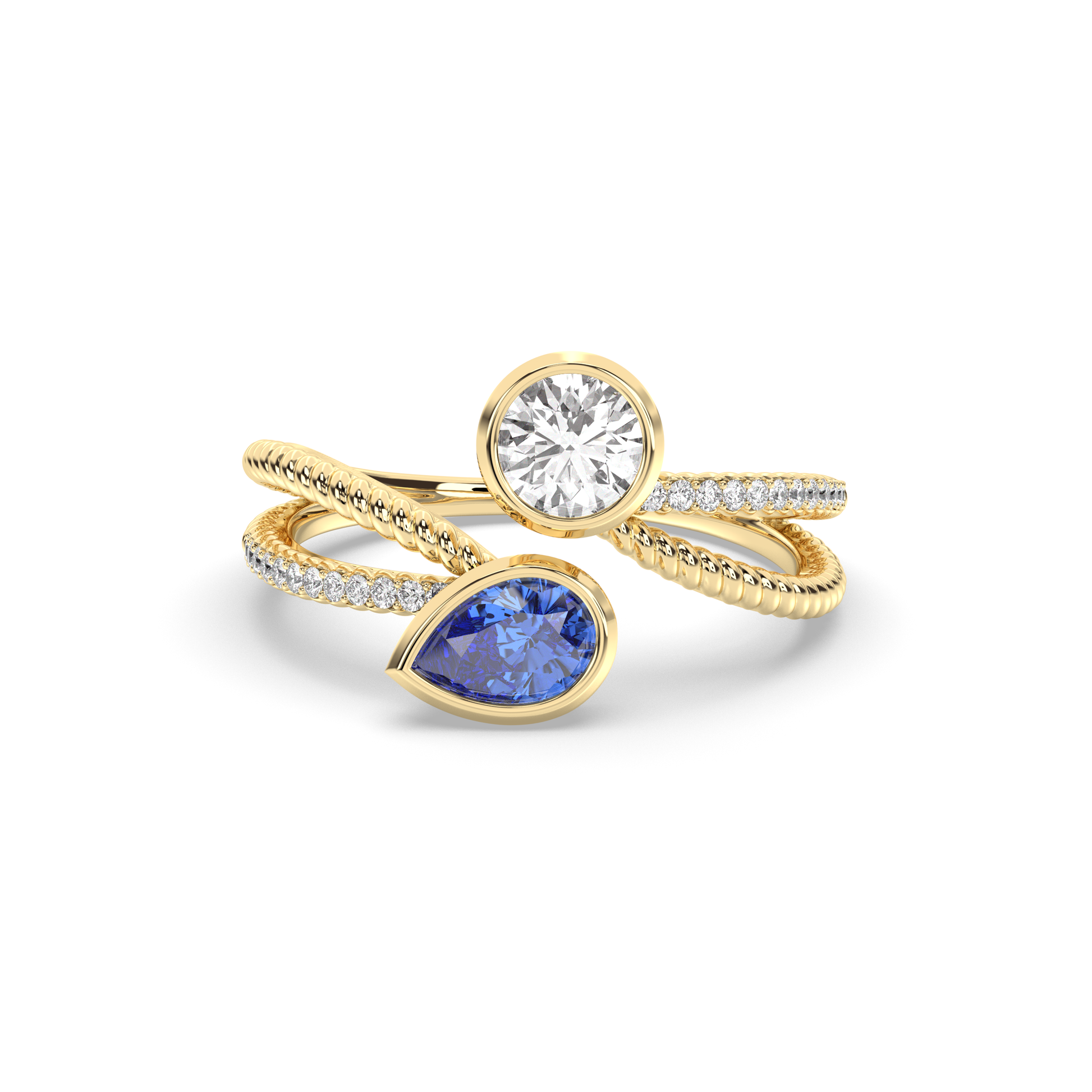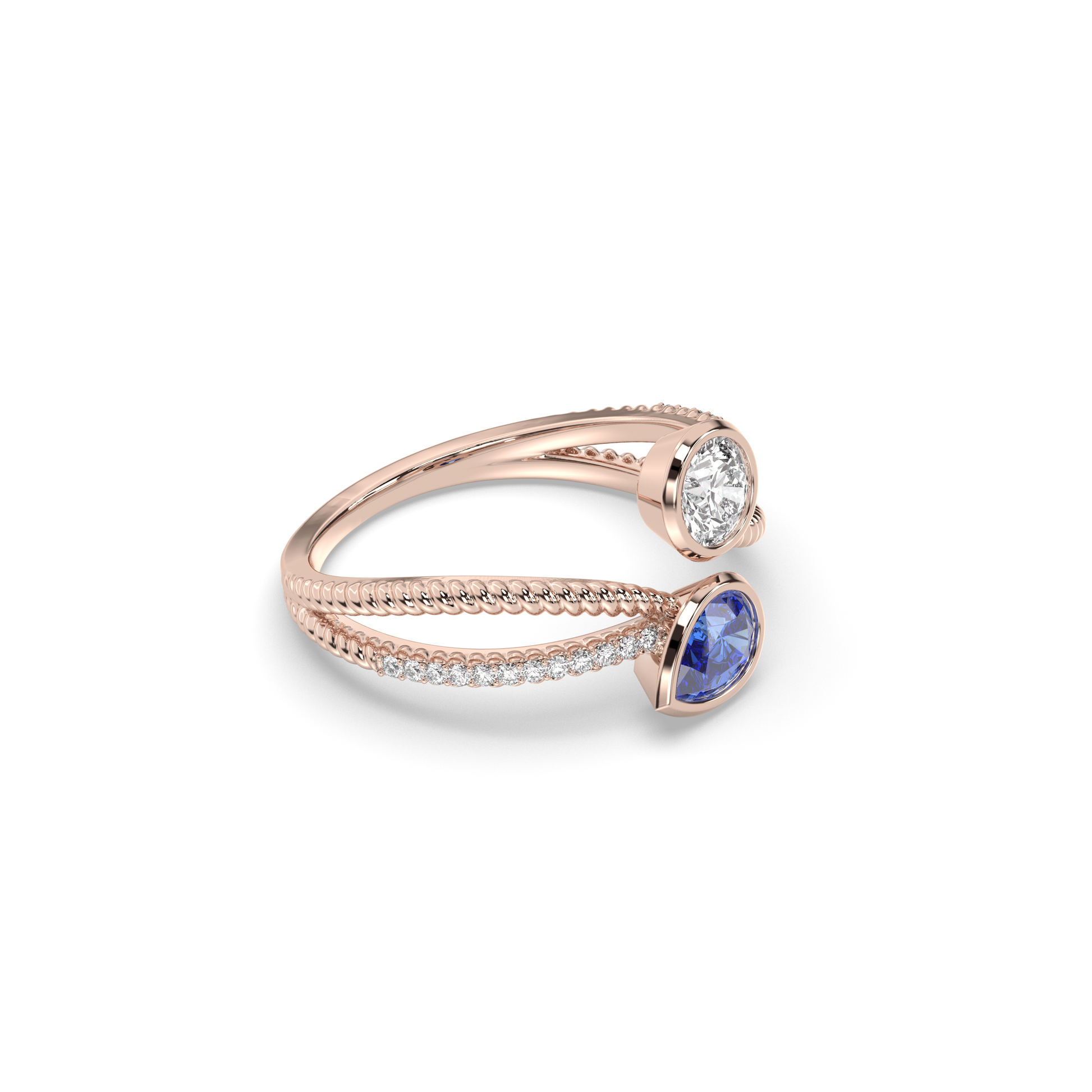 Twisted Band: The band showcases a sophisticated twisted design, adding a modern and dynamic element to the ring's overall look.