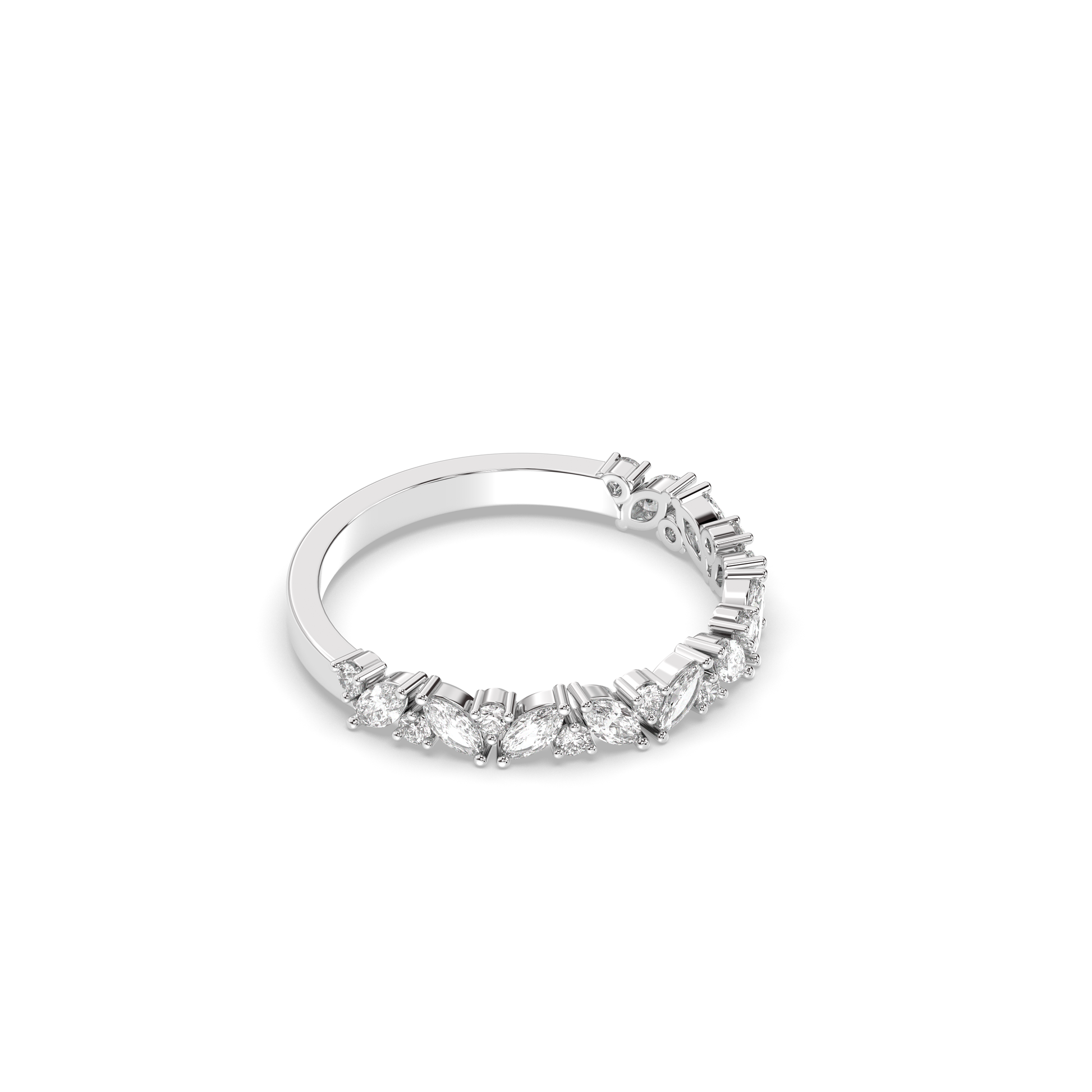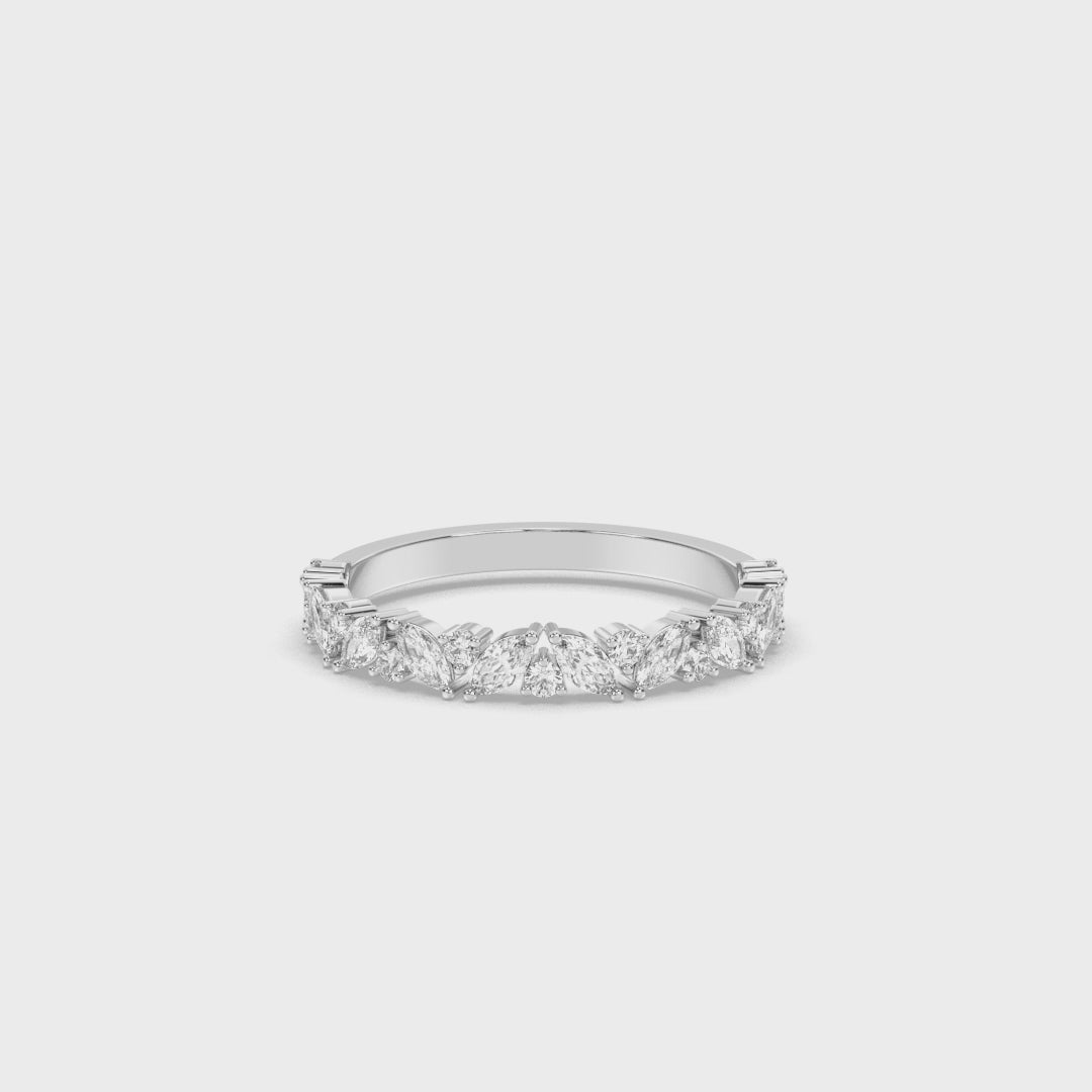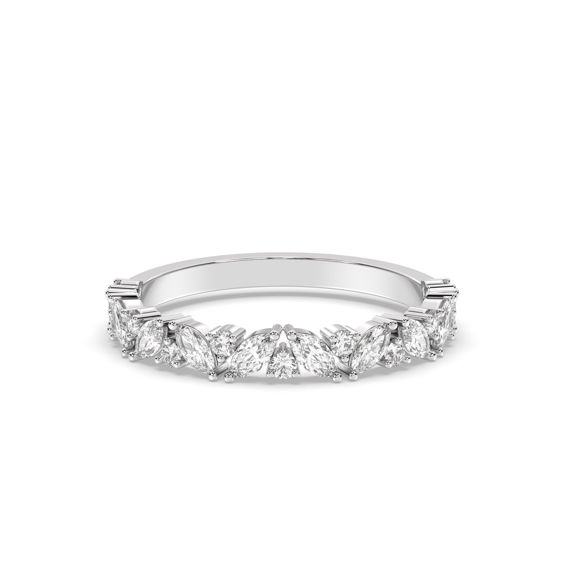 - Continuous row of exquisitely cut marquise and round diamonds that sparkle brilliantly and elevate this ring to another level.
