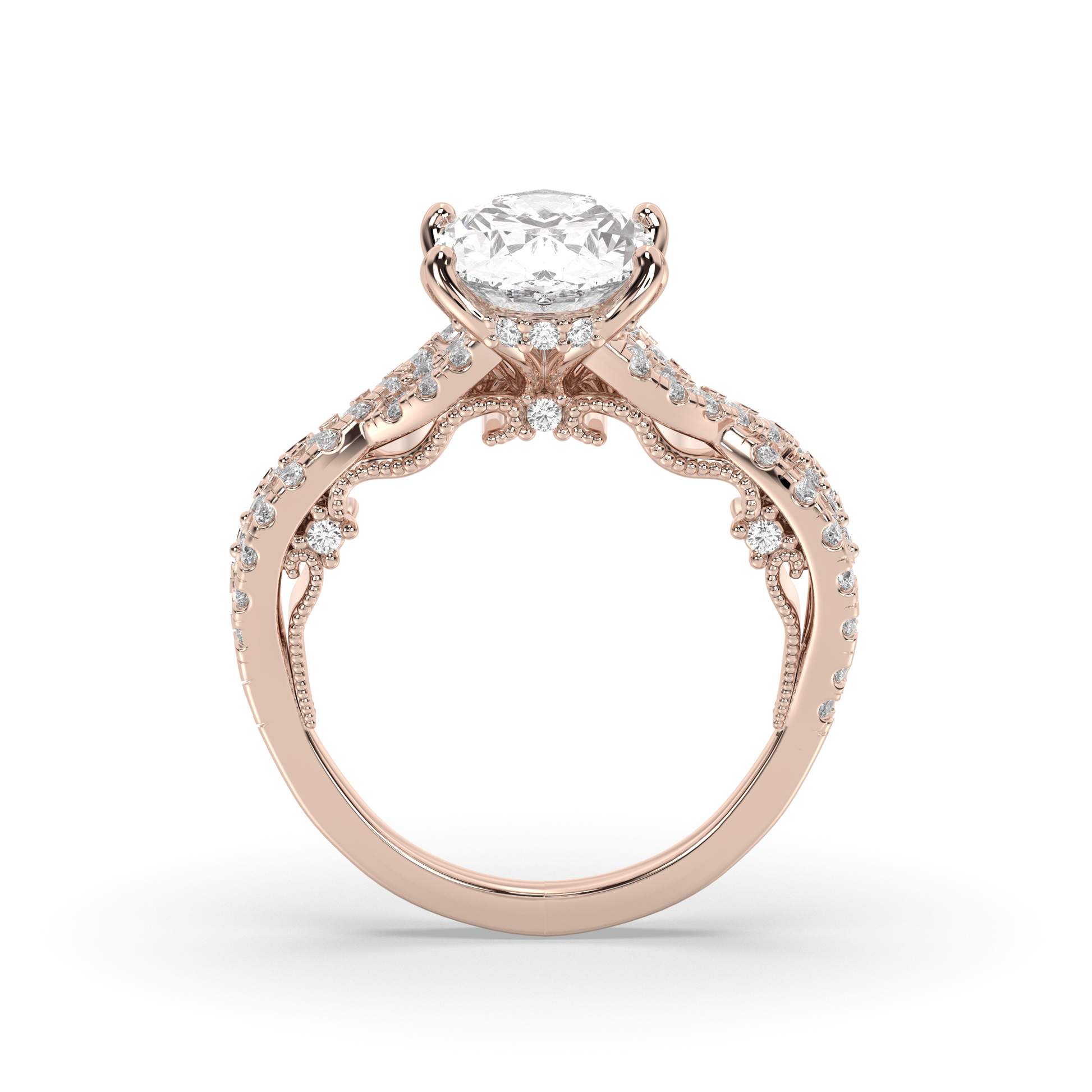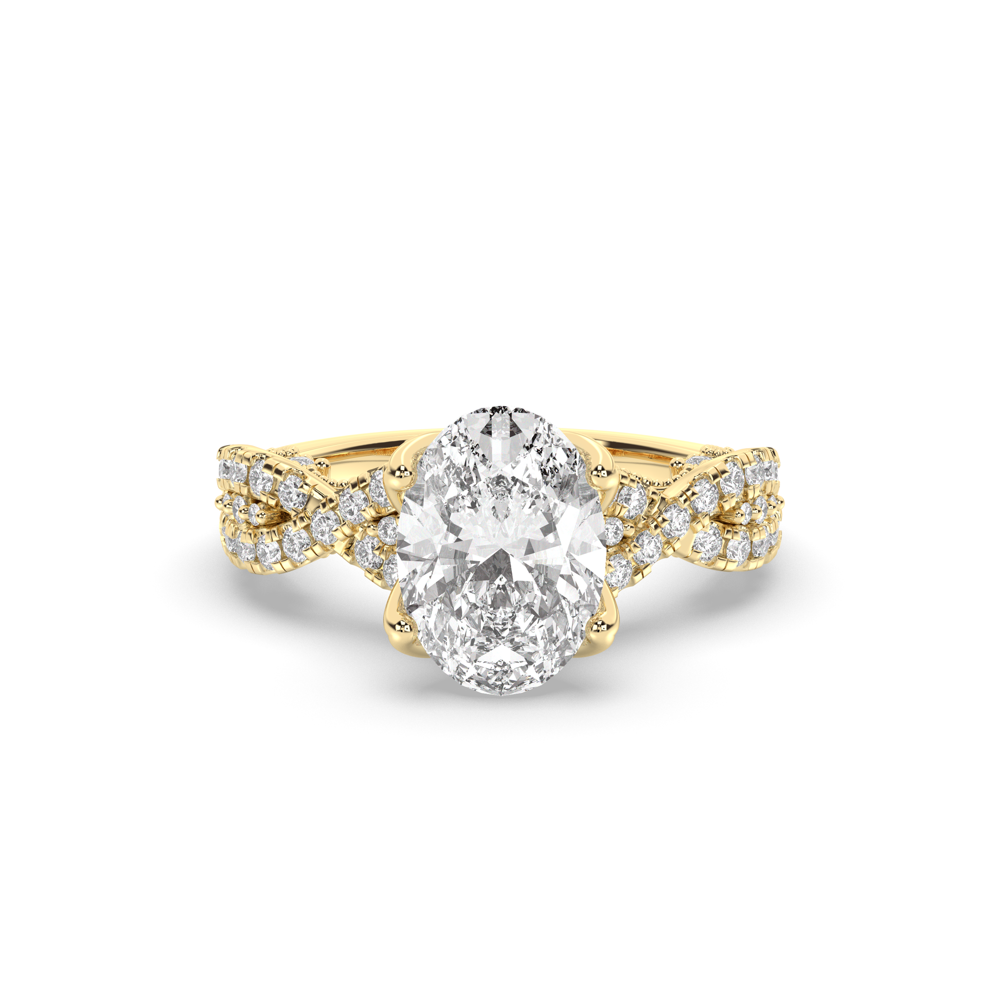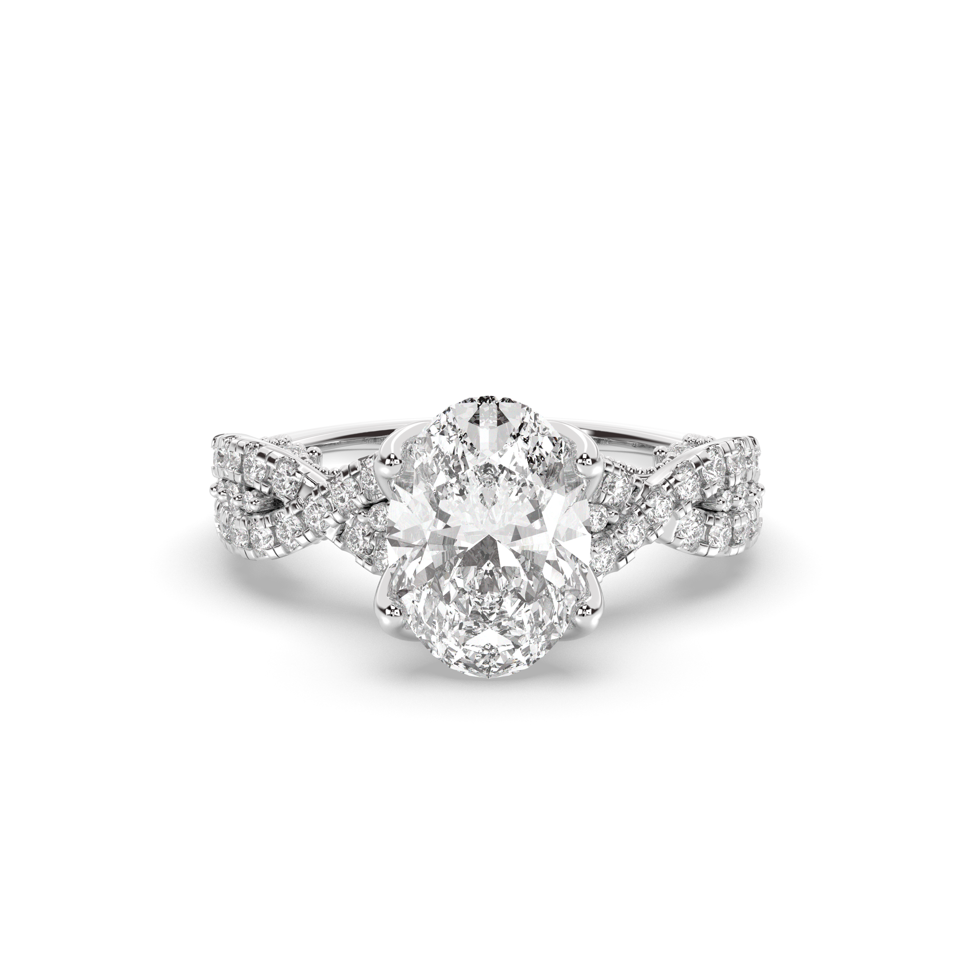 - Throughout the tulip petal prongs is a hidden halo of diamonds.